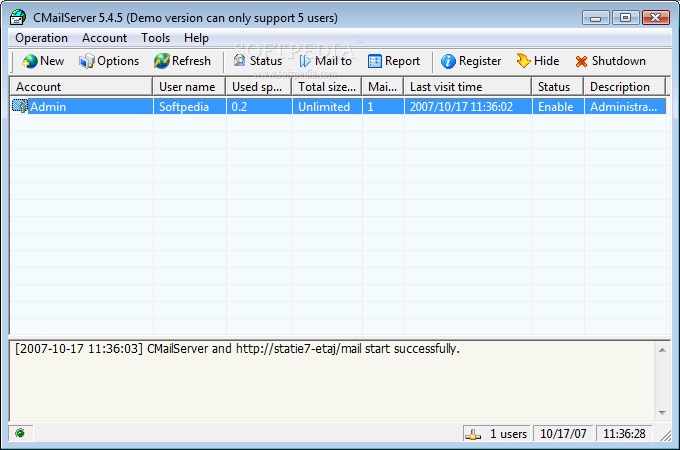 ï¿ Allows administrator to create, delete, and disable users mailbox and set mailbox size.