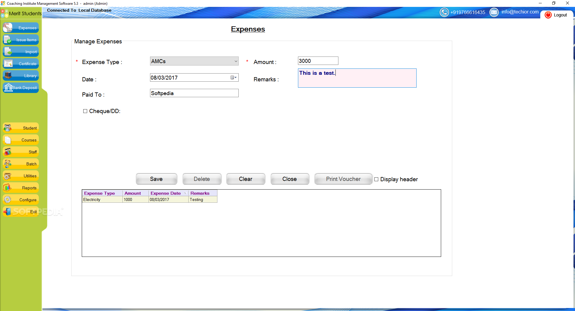 Coaching Institute Management Software is a demo software by Techior Solutions Pvt.Ltd. and works on Windows 10, Windows 8.1, Windows 8, Windows 7, Windows XP, Windows 2000, Windows 2003, Windows 2008, Windows Vista, Windows 2012.