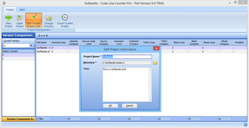 Code Line Counter Pro - Perl Version allows you to create several projects and assign the folder containing the working files to it. It can easily scan the directory identify the source code files within it, then analyze their contents. To begin with, each project can be assigned a certain version, that can be incremented with each modification.
