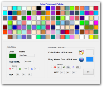 Color Picker and Palette is a free software by Southsoft Solutions and works on Windows 10, Windows 8.1, Windows 8, Windows 7, Windows XP, Windows 2000, Windows 2003, Windows 2008, Windows Vista, Windows 2012.