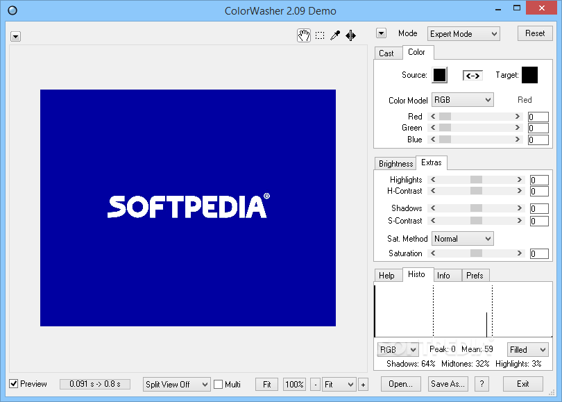 You can use the app to enhance web graphics, drawings, cartoons, paintings or screenshots. Compared with its other similar utilities, it doesn't offer three preview panes so that you can view different styles at the same time. What's more, you have the option to display histograms for each individual element, and change the size for the preview and output, enable neutral look, four-color-sensor and deactivate the color management.
