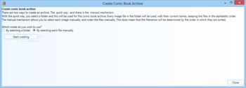 On the other hand, there’s the possibility to build CBR or CBZ comic strips by yourself. There are no advanced, or basic editing tools, so pages need to be in the final form. What the application actually does is to grab either pictures you manually specify, or from a target folder, and bundle them together in a readable format, which you can then load, and read here.