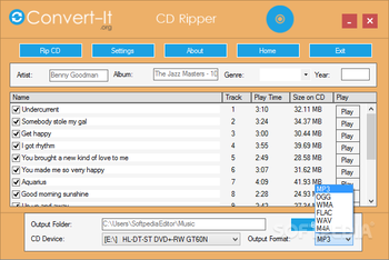 The CD ripper allows you to extract content from a track CD and save it to your computer as the desired format. It also includes an integrated audio player. The Radio allows you to listen and record stations from all over the world.