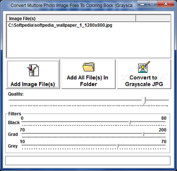 Convert Multiple Photo Image Files To Coloring Book (Grayscale) Image Files Software gives you the possibility to create a list with the photos that you want to alter. You may add the content of an entire folder to the list and clear the entire workspace with a single click.