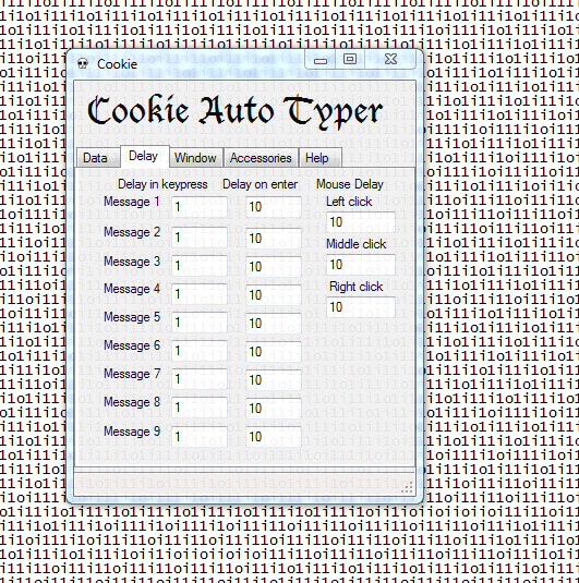 Who has not wanted the ability to fill any program or document with the message of your choosing. Created to be user friendly and highly customizable. Perfect for anything from creating custom key macros, typing keys you do not have on the keyboard or just to flood a program with a message. The mouse is also supported to include clicking in your custom message.