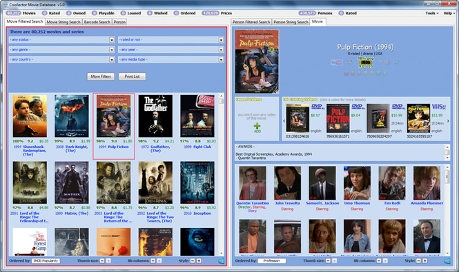 Coollector Movie Database is a free software by Coollector and works on Windows 10, Windows 8.1, Windows 8, Windows 7, Windows XP, Windows 2000, Windows 2003, Windows 2008, Windows Vista, Windows 2012.