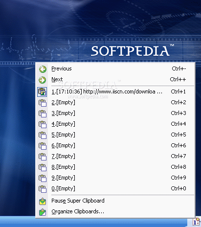ï¿ Provide up to 10 clipboards, all of them are completely identical with the original Windows clipboard: operates in the same way, supports the same digital formats (text, image, audio, and more); Automatically switch to next clipboard, or manually switch to other clipboard by mean of customized shortcut key or menu command; Automatically save and restore each clipboard contents between Windows Sessions;