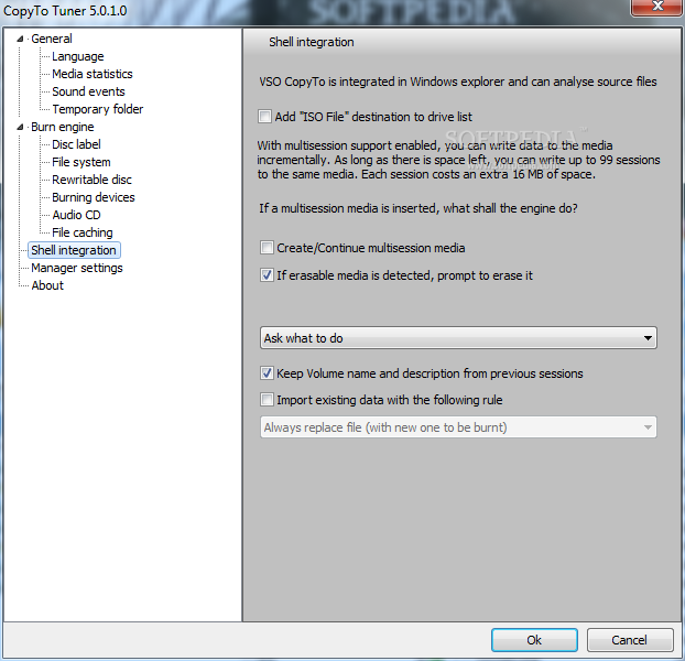 Burn your DVD movies and videos, music, games, photos, and data files in one click. CopyTo is a light alternative burning combining performance, speed and simplicity. Burn your disks or create ISO files in a variety of ways: using Windows shell, with FileDepot technology or launch the application in the traditional manner. CopyTo uses voice notifications to make your burning tasks easy and fun. The program uses a smart data analyzer that suggests the best output format (audio CD, DVD Video, Blu-ray disk) according to your needs. Advanced users will find the settings they desire such as unicode, multi-writer burning, support of virtual drives, and possibility to modify ISO files.