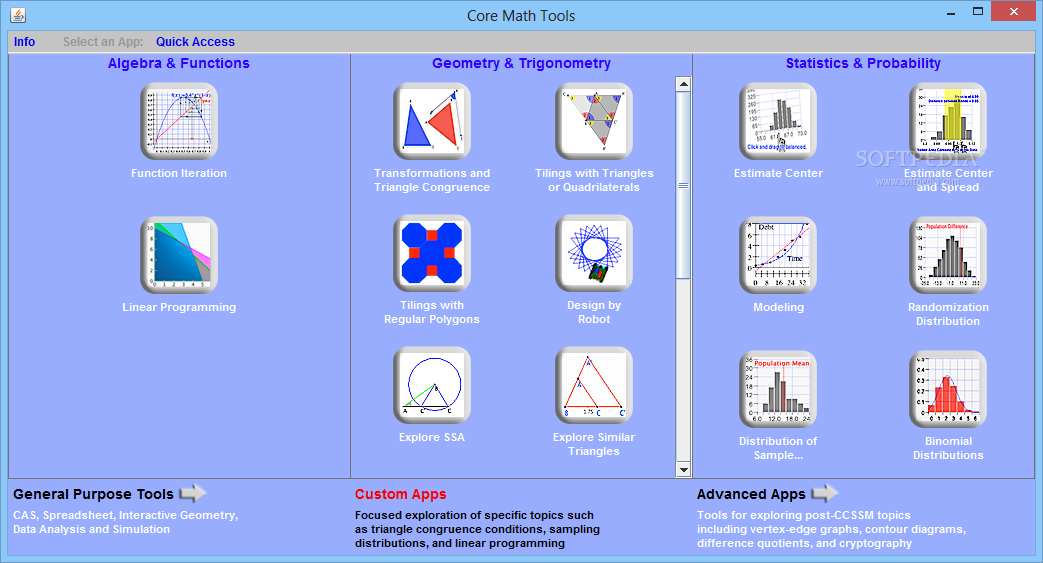 Core Math Tools is a free software by National Council of Teachers of Mathematics and works on Windows 10, Windows 8.1, Windows 8, Windows 7, Windows 2012.