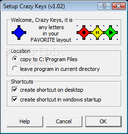 Crazy Keys is a free software by CrazyKeys and works on Windows 10, Windows 8.1, Windows 8, Windows 7, Windows XP, Windows 2000, Windows 2003, Windows 2008, Windows Vista, Windows 2012.