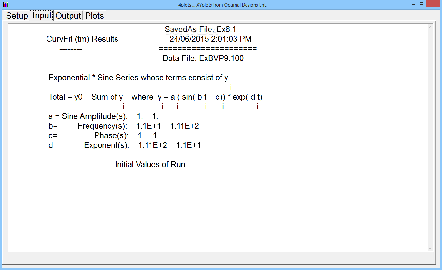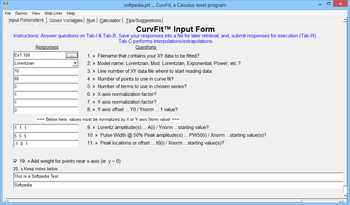 Probably the most important thing about CurvFit is its ability to create algebraic series of data such as Sine, damped Sine, Lorentz, Modified Lorentz, Power (Polynomial) and Exponential.