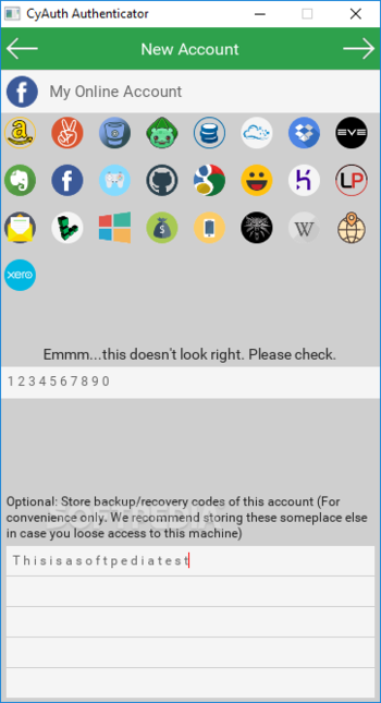 It is worth mentioning that the application does not employ a server for storing the data you are entering. In fact, the idea behind the application is to help you increase the security of online accounts that support the use of other code generating tools for their two-step authentication process. Moreover, the utility also has a dedicated section where you can enter your recovery or backup codes, if necessary.