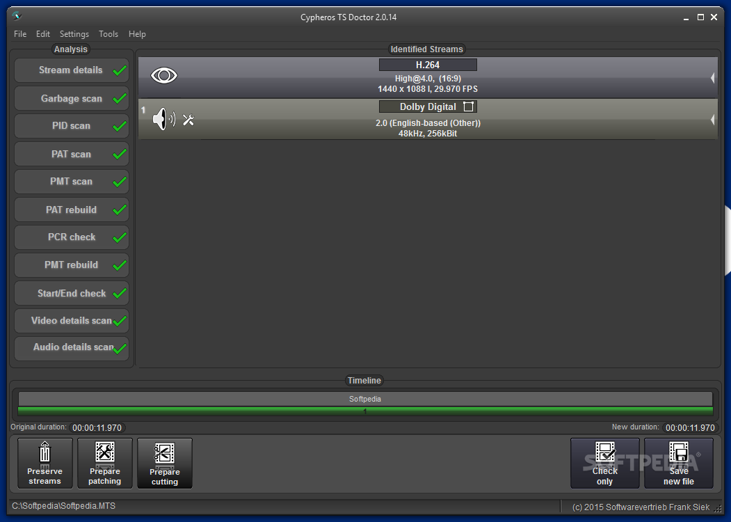 You can download Cypheros TS-Doctor which is 63.55 MB in size and belongs to the software category Video. Cypheros TS-Doctor was released on 2017-04-05 and last updated on our database on 2017-04-24 and is currently at version 2.