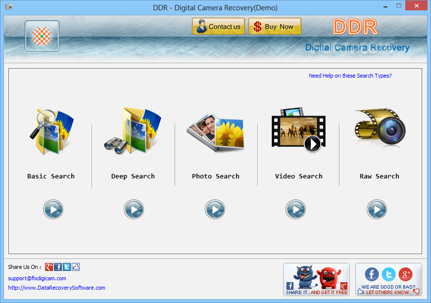 DDR - Digital Camera Recovery is a tiny program designed to help you overcome this predicament and restore media files that you deleted accidentally from the camera's storage