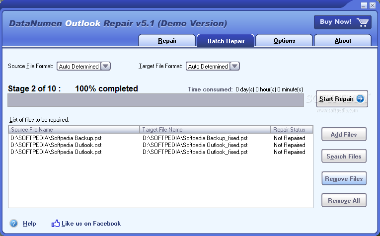 In case you have compromised more than one PST file, the application enables you to recover them all at once, in order to save time and use the same procedures on every item. As with the single file option, you can also select the source and target formats and you can view details about the repair status as well.