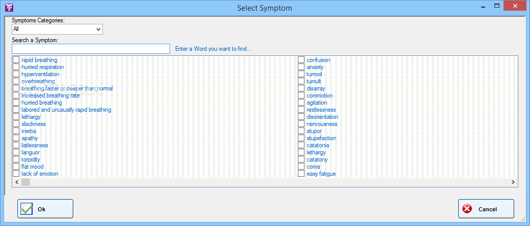 To receive accurate results, it is advisable to enter all the symptoms you or your patients are suffering from, as well as any tests results you have access to.