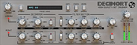 Decimort acts as the bit crusher with filter. The complex and advanced signal processing algorithms within Decimort simulate the behaviour of the whole sampling path which exists in every AD/DA converter. Decimort has no internal aliasing. The only aliasing effect present in the system is the modelled aliasing of the classic samplers. Undesired artefacts are not present in the processed signal. Only wanted artefacts remain. A further very steep low-pass filter, synchronised to the signal frequency, can be applied at the end of the signal path to absolutely ensure that no unwanted out-of-band signals remain. Decimort is also equipped with analog like filters with adjustable resonance that allow further sculpting of the signal. These can be used to smooth the sound or remove more of the sonic artefacts introduced into the signal path by the modelling process. Decimort can process the right and left channels of a stereo signal completely independently. This allows all path parameters to be set differently for each channel.