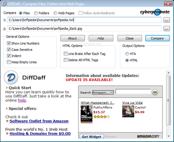 Additionally, the results can be numbered line by line or the line-breaks can be eliminated. DiffDaff is suitable for searches involving version differences, differences between websites, debugging source code, help with the version administration, comparison of backups, folder relations and much more. A learning curve is not necessary since the software and the results are self explanatory.