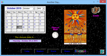 It is possible to generate automatic tarot card readings by typing in certain numbers. For instance, the ORACLE window displays the four categories of minor arcana cards and asks you to specify a number for each one of them. Based on the number you have picked, the application displays a corresponding card from the major arcana.