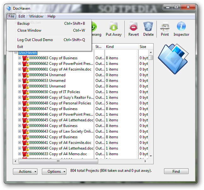 DocHaven allows you to manage and backup your documents in the cloud easily. You take them out of the cloud as you need them then put them back into the cloud when you have finished with them. Once a project is back in the cloud it can be taken out by others in your group.