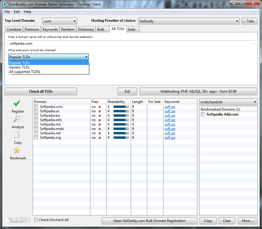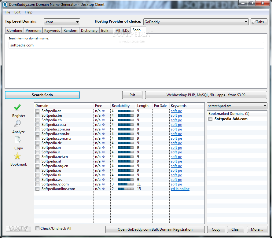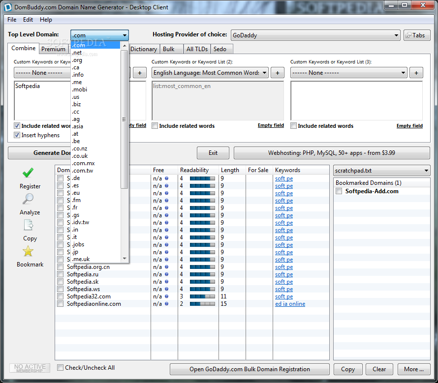 All generated domain names are instantly checked for their availability and a complex algorithm is used to determine the readability, which is important for domain name branding. Quickly generate a domain name using the Domain Name Generator Desktop Client.System requirementsInternet connection