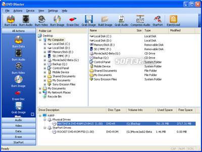 Ever had a bunch of MP3s, but couldn't figure how to make a proper CD to play back in your car? Make an Audio CD from WAV, MP3, WMA, OGG, ASF or WMV files from within a single application. Make a Video CD, Super VCD or even a DVD video from a movie in almost any video format from the very same application. Burning data CDs and DVDs is equally easy no matter what you store. Erase or rewrite CD-RW discs, create double-layer DVDs and perform just about any burning task with DVD Blaster.