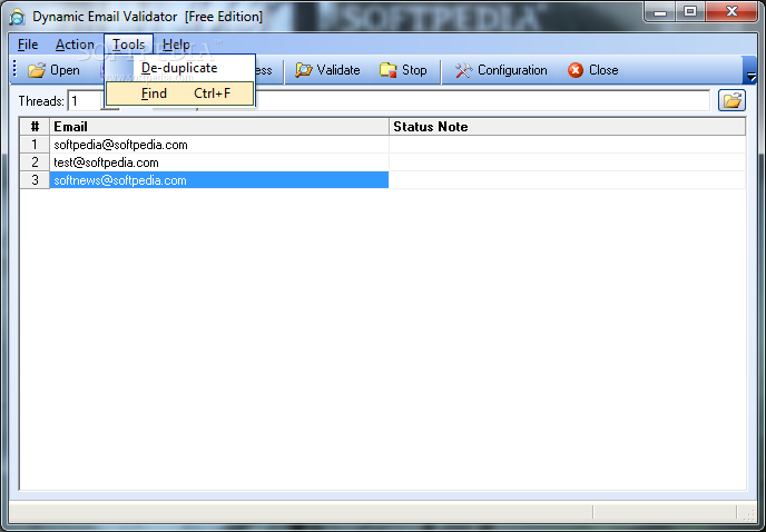 Dynamic Email Validator is an essential tool for email list hygiene and to avoid ISPs mail servers blocking or barring your email domain because of you repeatedly sending emails to non-existing account holders. Dynamic Email Validator·� is a powerful and reliable Multithreaded program, capable of handling large volumes of email addresses providing high speed email verification.System requirementsPentium II