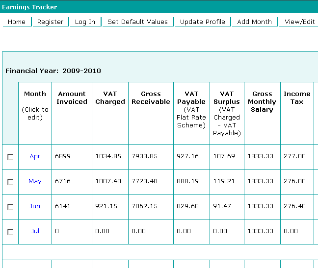 Earnings Tracker is a free accounting / bookkeeping software tool for contractors and freelancers. It enables invoice amounts, salaries, pension contributions, and expenses to be recorded, and calculates the amount of corporation (business) tax due. It also calculates dividend payments for shareholders, and enables dividend tax vouchers to be generated. Written in PHP and MySQL, Earnings Tracker can be downloaded and installed on a web server, or a preinstalled online version can be used.