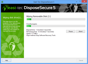 Dont give away sensitive information, valuable corporate trade secrets, business plans, personal files and letters, or traces of Internet or newsgroup activity with the old computers that you or your company resells, donates, reassigns to different departments or removes from operation. Deleting all the files or even formatting the hard disk is not enough to stop people to restore information using basic recovery programs. east-tec DisposeSecure 5 however removes all traces of data from the computer hard disk, by overwriting and destroying beyond recovery every sector and bit of information. Data is removed according to government and industry standards or custom user security levels. east-tec DisposeSecure 5 can be operated either from a bootable media (USB stick, floppy disk, CD, DVD) to sanitize any drive or partition from the computer, or through the network to sanitize a large number of computers, centralize sanitization logs (reports) on the server and more. The computers can be sanitized regardless of the file system or the operating system. In the latest version, you can also wipe non-system external hard drives directly from Windows, without booting from another device. Whether you want to prevent identity theft, protect your privacy or stop competitors from stealing your sensitive information, east-tec DisposeSecure 5 offers the solution.