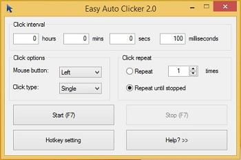 Easy Auto Clicker is a free software by Easyautoclicker and works on Windows 10, Windows 8.1, Windows 8, Windows 7, Windows XP, Windows 2000, Windows 2003, Windows 2008, Windows 98, Windows ME, Windows NT, Windows Vista, Windows 2012.