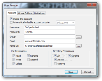 Easy File Sharing FTP Server is a software that supports the basic FTP commands, along with other useful functions that include groups, logs, IP access and virtual folders.