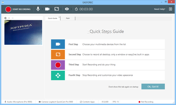 EASY2REC allows you to create impressive presentations, record voice overs or video messages. The program can capture the desktop activity or record the actions in a single window, for tutorials or usage examples.