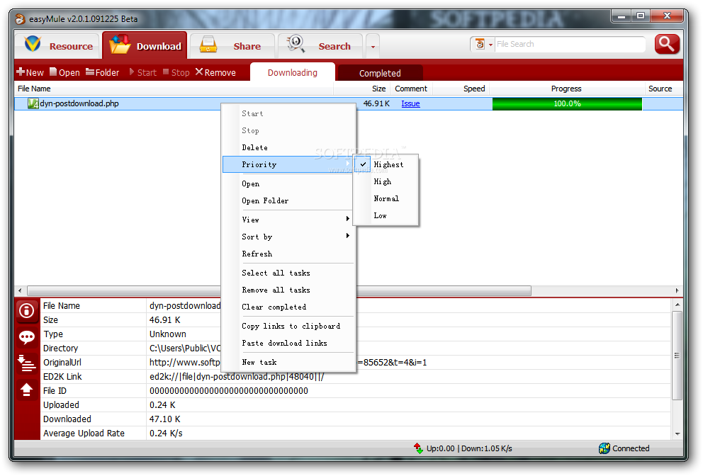 You can download easyMule which is 4.57 MB in size and belongs to the software category Download Managers. easyMule was released on 2012-05-23 and last updated on our database on 2017-03-05 and is currently at version 1.2.