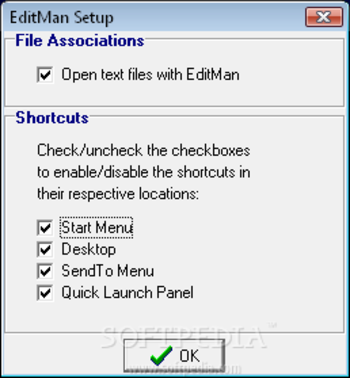 · A shortcut to EditMan in the SendTo popup menu in Explorer