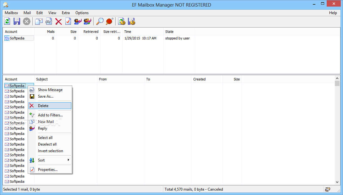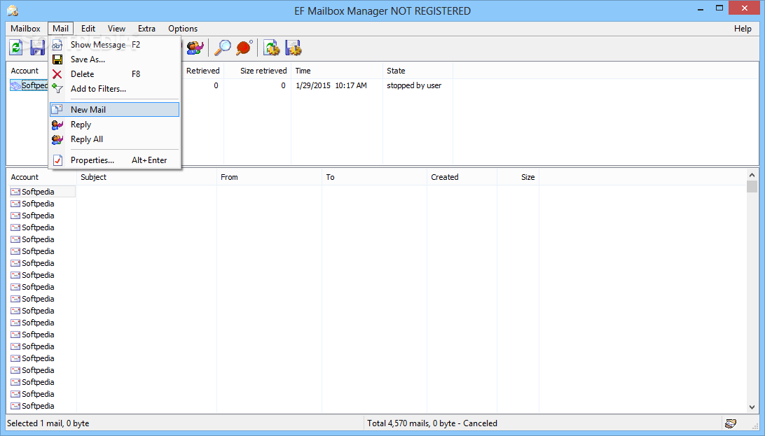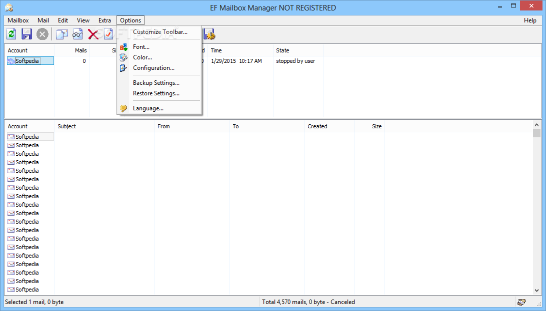 You can download EF Mailbox Manager which is 3.04 MB in size and belongs to the software category E-mail. EF Mailbox Manager was released on 2016-05-27 and last updated on our database on 2017-03-07 and is currently at version 8.5.