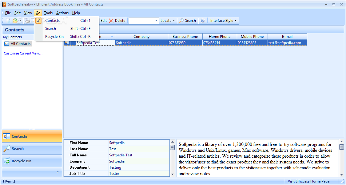 Efficient Address Book Free is a free software by Efficient Software and works on Windows 10, Windows 8.1, Windows 8, Windows 7, Windows XP, Windows 2000, Windows 2003, Windows 2008, Windows Vista, Windows 2012.