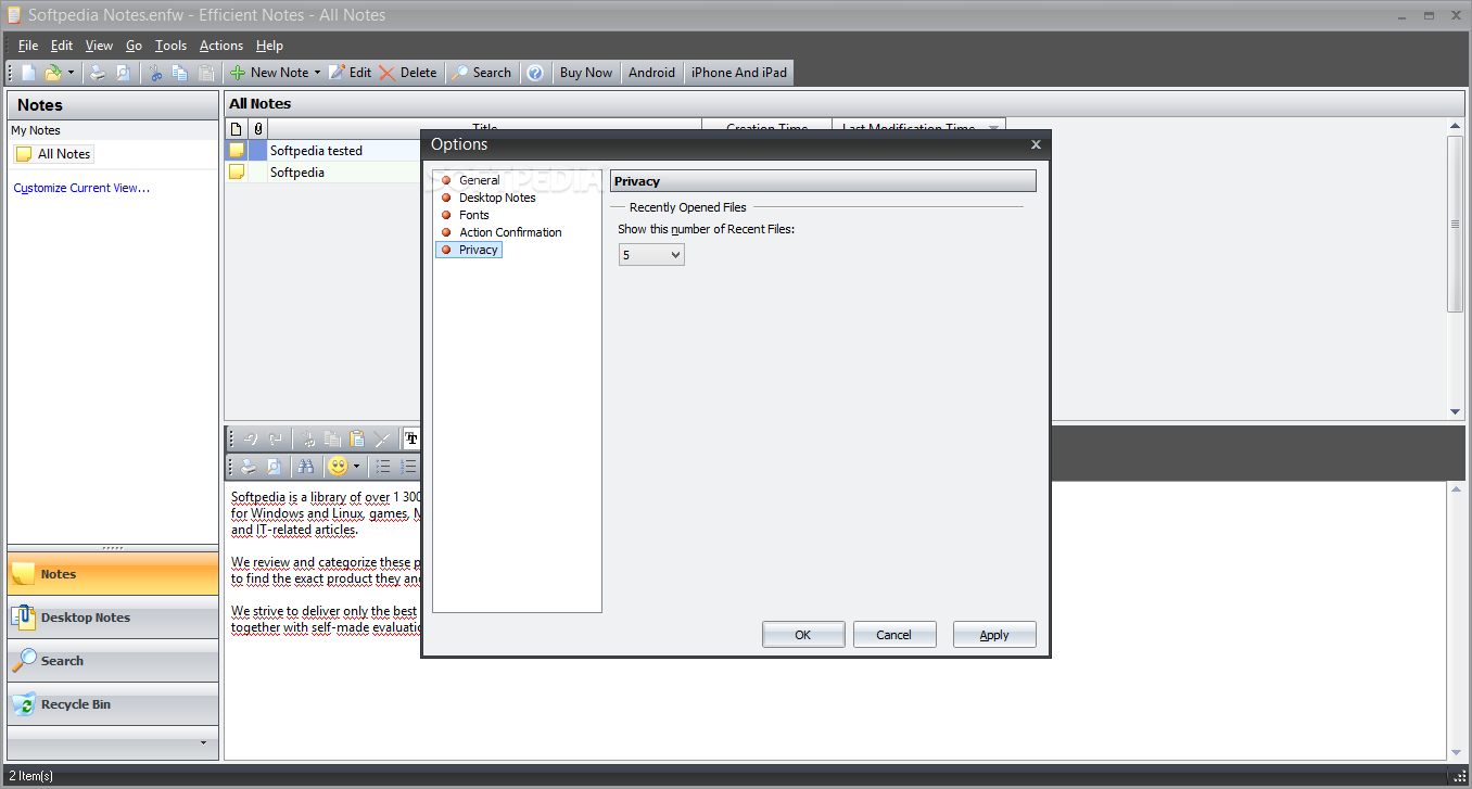 Efficient Notes is a demo software by Efficient Software and works on Windows 10, Windows 8.1, Windows 8, Windows 7, Windows XP, Windows 2000, Windows 2003, Windows 2008, Windows Vista, Windows 2012.