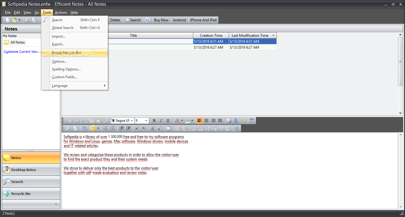 There is a Recycle Bin in this notes management software, you do not need to be worried that you may delete some important information by mistake. The functions of Backup and Restore can help you conveniently save and migrate data.