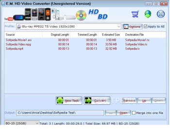 E.M. HD Video Converter has not only the ability to let convert HD videos to DVD, but also the ability to convert SD (standard-definition) to HD which including FLV-HD, WMV-HD, MPEG4-HD, H.264-HD and more