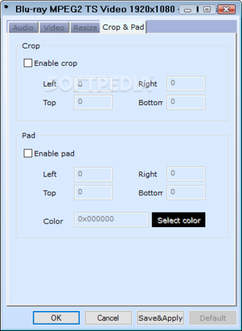 You can set parameters of the output profile, such as split size, video size, bit rate, frame rate, aspect ratio, pad, crop, etc.