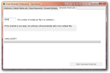 Email Generator Professional is designed to automatically generate a list of e-mail addresses based on user-defined keywords. By following four simple steps, you can obtain a long list of mails, which you can use for marketing purposes.