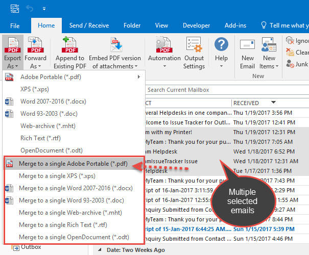 You can download Email to PDF for Outlook which is 13.93 MB in size and belongs to the software category E-mail. Email to PDF for Outlook was released on 2017-02-13 and last updated on our database on 2017-04-28 and is currently at version 9.2.