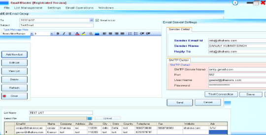 EmailBlaster is a demo software by Dhakera Technologies and works on Windows 10, Windows 8.1, Windows 8, Windows 7, Windows XP, Windows 2000, Windows 2003, Windows 2008, Windows 98, Windows ME, Windows NT, Windows Vista, Windows 2012.