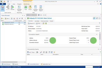 The application can monitor multiple hosts concurrently. The Free edition of the application allows monitoring up to five hosts; the Professional edition doesn't have any limitation for the number of monitored hosts. Monitoring of every host works independently from other hosts. You can monitor tens thousands of hosts from a modern PC.