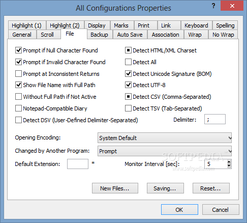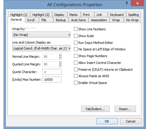Features include JavaScript or VBScript macros, plug-ins, syntax highlighting (including embedded scripts in HTML, ASP, and PHP files), drag-and-drop, CSV and TSV mode, Narrowing, Brackets/Quotation Mark Auto-Complete, and much more. The text editor supports not only JavaScript and VBScript for the text editing macros, but also PerlScript, PHPScript, Python, Ruby, and many other ActiveScript languages as long as the script engines you want to use are installed on your system. Binary (ASCII View) and Binary (Hexadecimal View) are included in the available encodings.