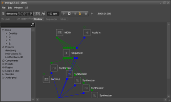 High level modular design lets you split, layer and chain instruments and effects with MIDI and audio connections. energyXT includes an easy to use arpeggiator/step sequencer and a chord component that can be placed anywhere in your MIDI chain.