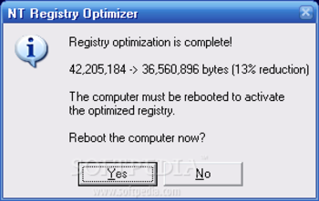 In addition, a separate application allows you to optimize your Windows registry files. After the task is completed, you can view the initial and current size of the registry, as well as the reduction. In order for the effects to be visible, you have to restart your computer.