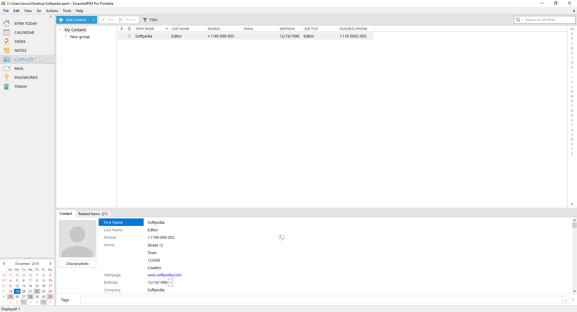You can download EssentialPIM Pro Portable which is 19.84 MB in size and belongs to the software category Office. EssentialPIM Pro Portable was released on 2017-03-30 and last updated on our database on 2017-09-19 and is currently at version 7.54.