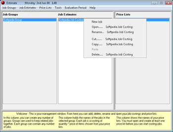 Each job is a costing of quantity, the price of items chosen from your price lists. You must open and create at least one price list before you can start costing jobs. The application lets you backup all data that you're working on and save it to your computer so you can restore it fast.