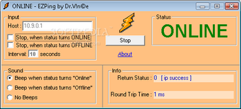 Will ping this host with the default settings (10 sec interval / continuous / beep when online).